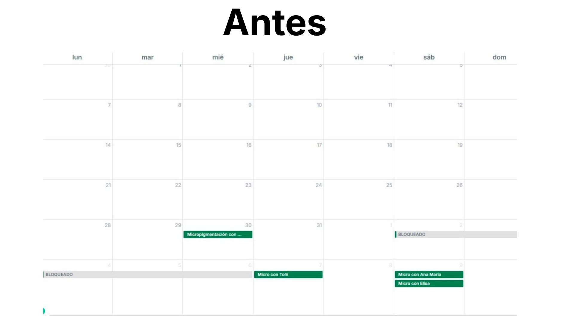 Antes: tatuador que ofrecía servicios de micropigmentación de forma ocasional. Aunque tenía una gran habilidad, la micropigmentación no era su principal fuente de ingresos (flujo de clientes inconsistente, dependía de promociones en peluquerías, negocios locales, boca a boca...)